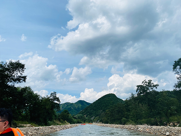 綠水青山,珍惜繞;藍天白云,水上漂。